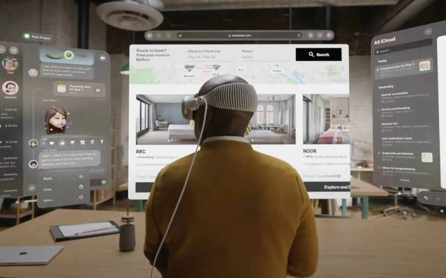 An app can be made up of multiple such content containers, all of which are managed uniformly by the spatial-computing OS.