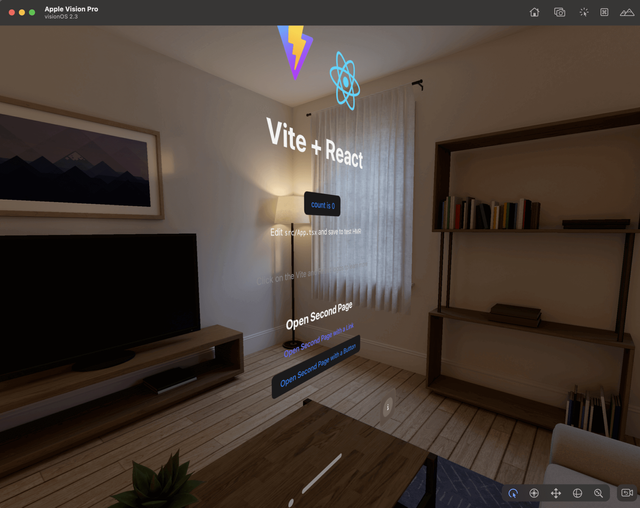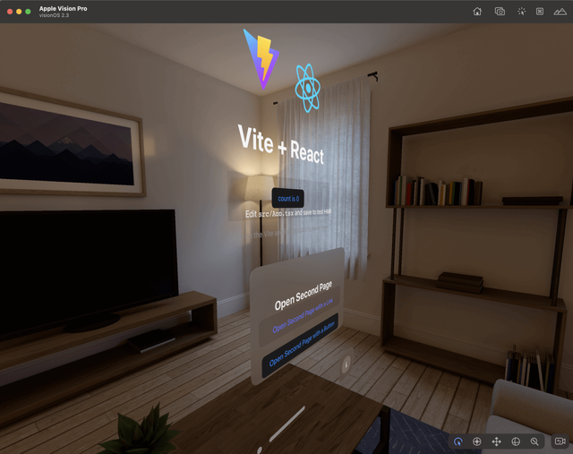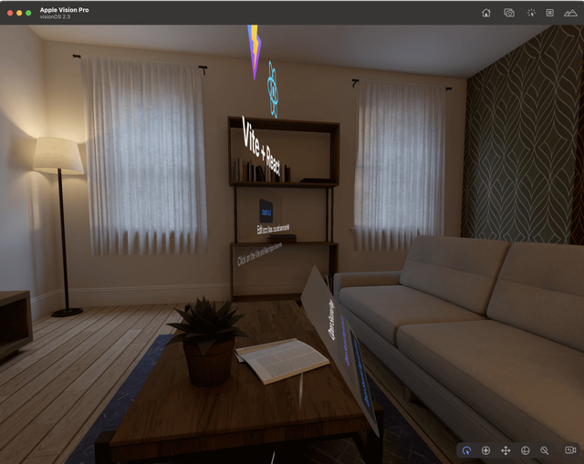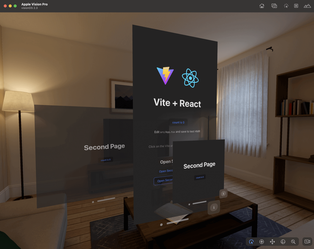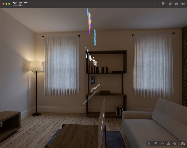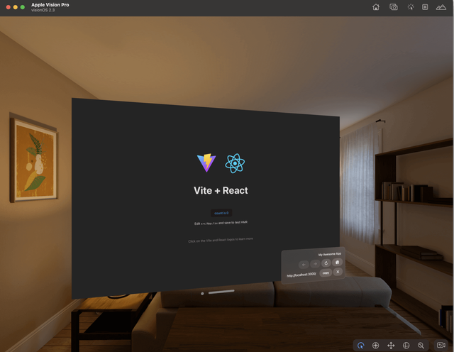 The visionOS simulator will automatically launch, installs the Packaged WebSpatial App, and runs it: